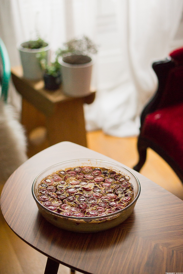 Ce clafoutis a l’air tout simplement délicieux, je vais l’essayer au plus vite ! Pour ma part, c’est tout l’inverse, je le préfère avec très très peu de cerise et ENORMEMENT de pâte (c’est mal ? oui c’est mal… mais qu’est-ce que c’est bon la pâte à clafoutis !)