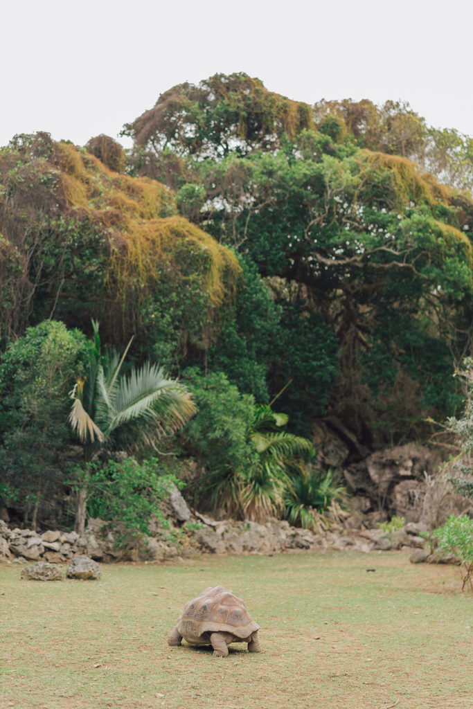 Avec la colonisation de Rodrigues, de nombreuses espèces ont disparu, notamment les tortues terrestres. En 2005, deux environnementalistes, Mary-Ann Stanley et Owen Griffiths, ont souhaité recréer l’écosystème originel de Rodrigues et d’en faire une réserve. Quand on y entre, on se sent effectivement dans un environnement très particulier, moi je me sentais comme dans Jurassic Park ! Après avoir réintroduit une flore indigène, il y a désormais 1200 tortues géantes d’Aldabra et tortues étoilées qui vivent dans la réserve.