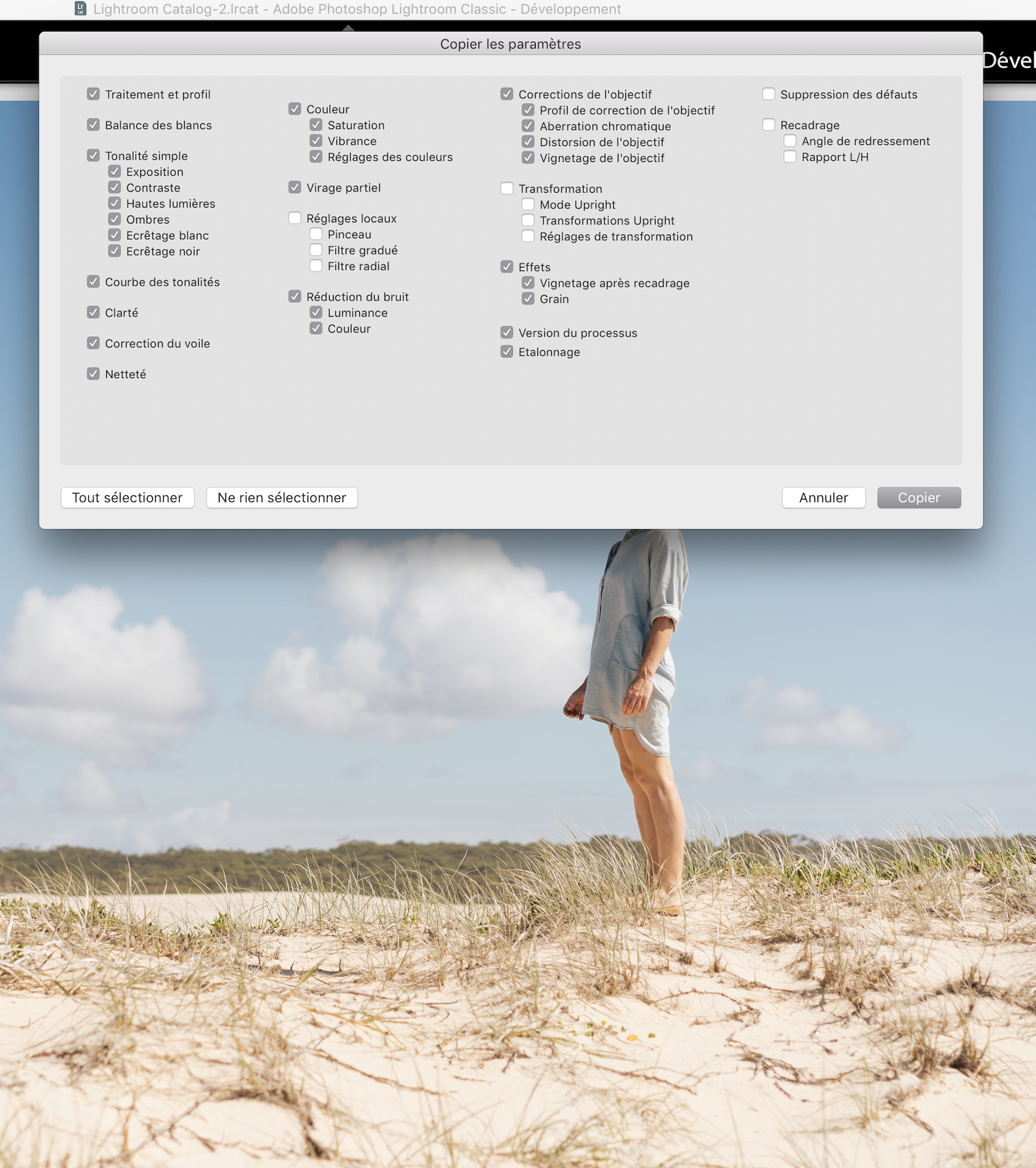 5. Et c’est tout pour une retouche photo très simple et rapide ! Il suffit ensuite d’exporter l’image au format souhaité. Si on veut appliquer ce même réglage sur un grand nombre de photos, on clique sur l’image (toujours depuis l’onglet « Développement » de Lightroom, et on fait « Copier ». Puis on colle sur toutes les autres photos sélectionnées. Je vous conseille néanmoins de faire une petite repasse sur l’ensemble des photos pour ajuster.